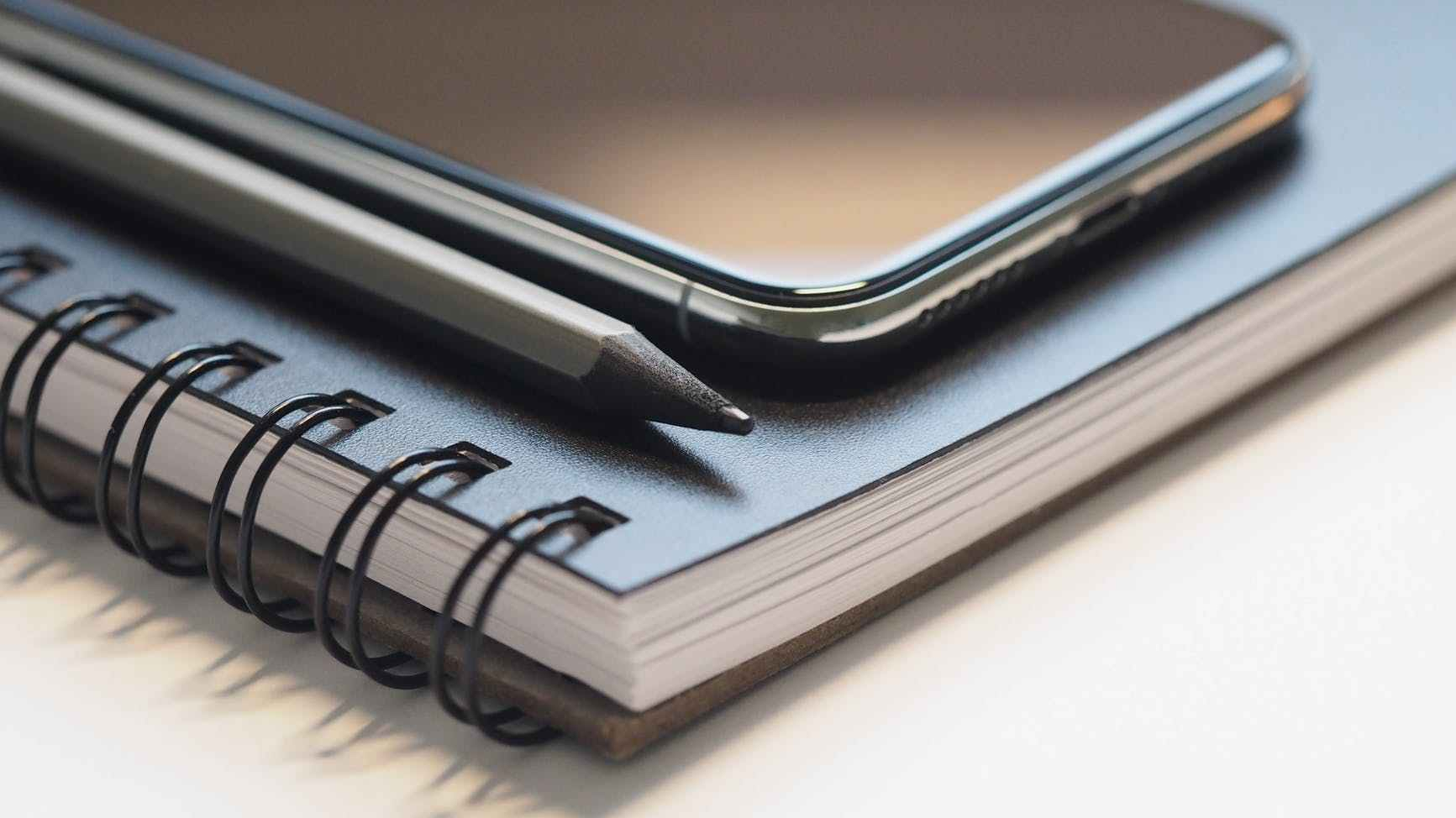 Immagine precedente Immagine successiva closeup photo of black smartphone near black and grey pencil on black spiral notebook Photo by Jess Watters on Pexels.com